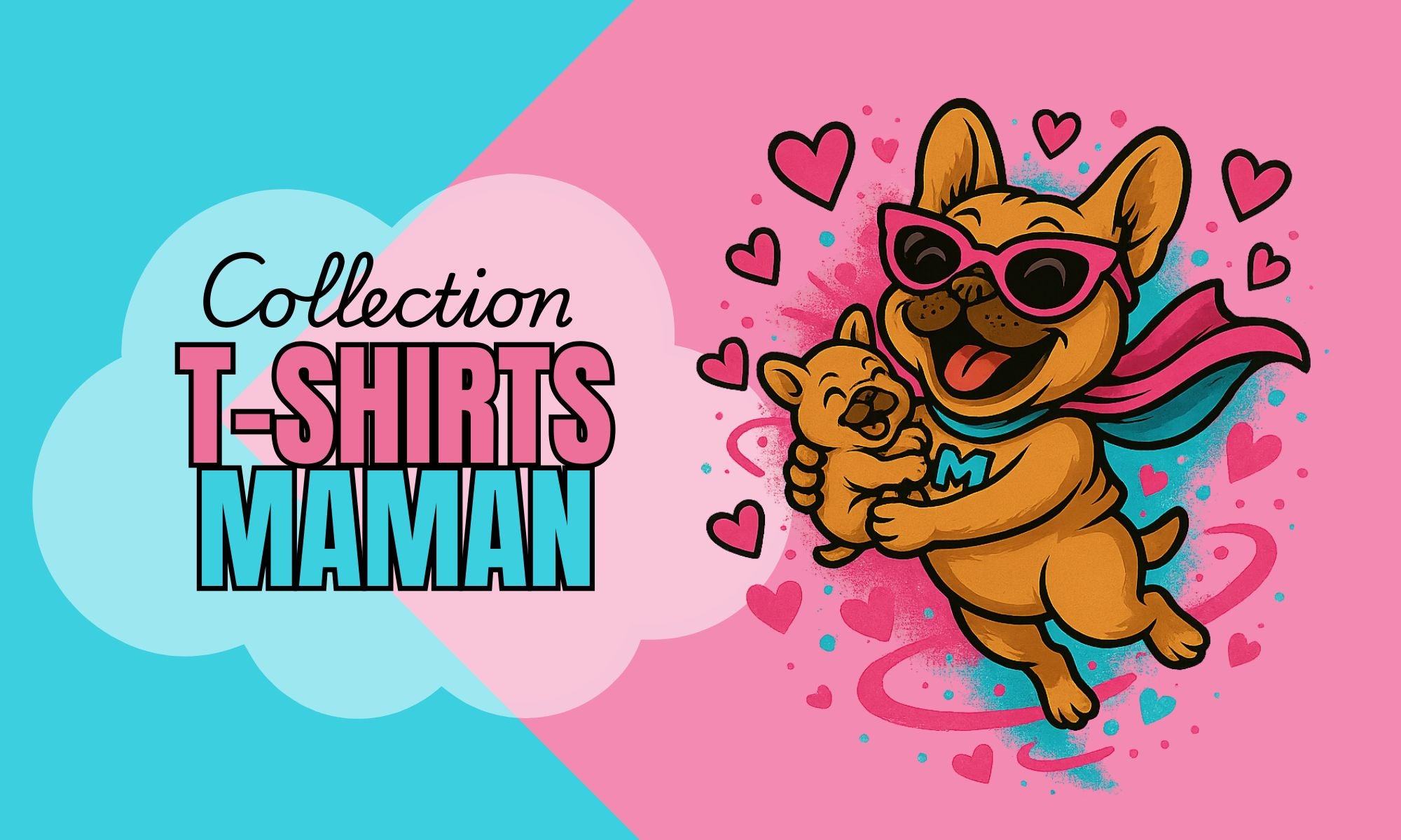 Découvrez nos autres collections de T-shirts Bouledogue Français pensées pour les mamans fans de Frenchies : des thèmes variés, des designs exclusifs et un confort au quotidien. Parcourez le carrousel ci-dessous pour trouver facilement le style qui correspond à votre humeur, à l’occasion ou à la saison.