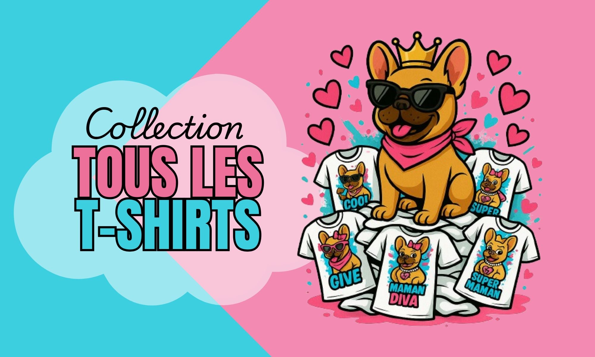 Découvrez nos autres collections de T-shirts Bouledogue Français pensées pour les mamans fans de Frenchies : des thèmes variés, des designs exclusifs et un confort au quotidien. Parcourez le carrousel ci-dessous pour trouver facilement le style qui correspond à votre humeur, à l’occasion ou à la saison.